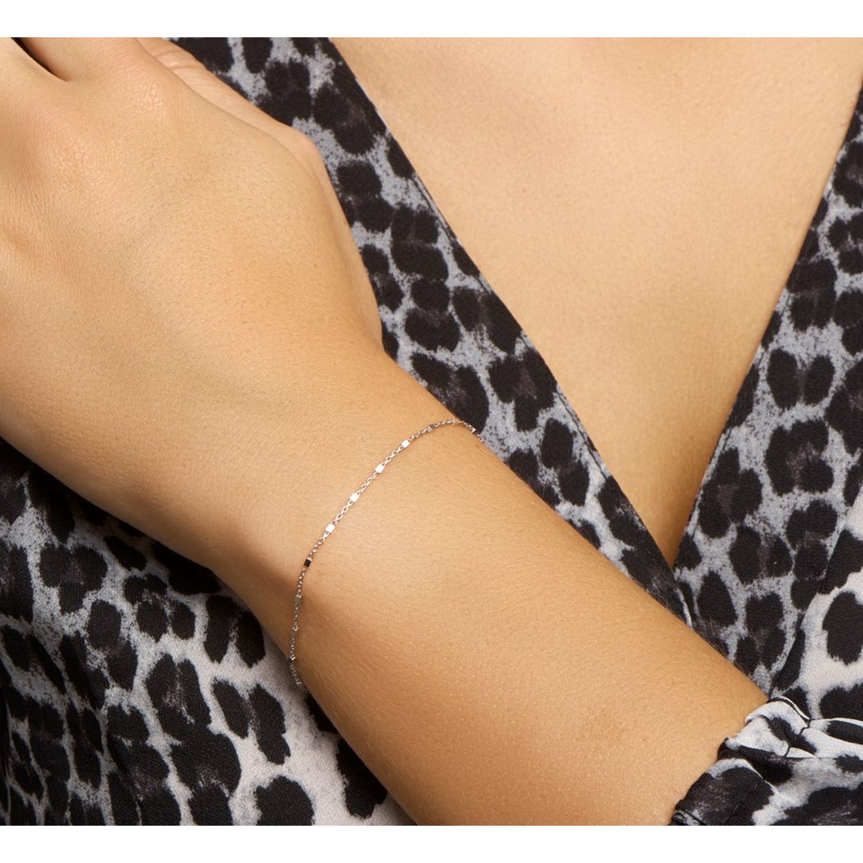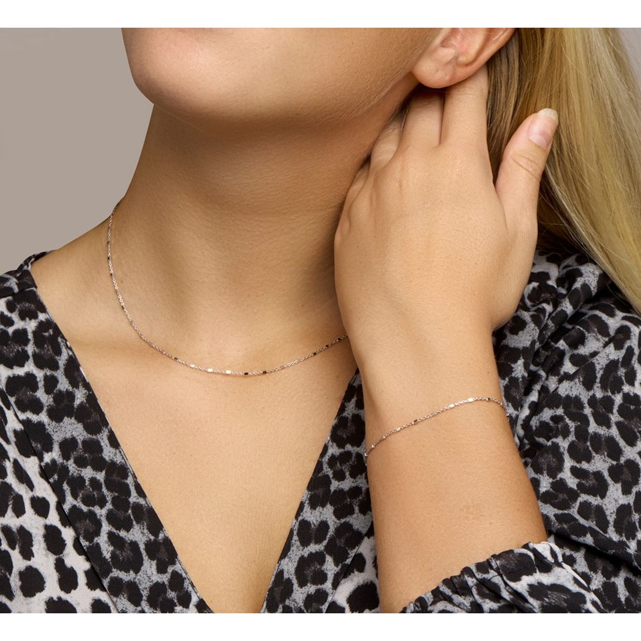 Gerhodineerd 925 zilveren 1.2mm blokjes armband uitgevoerd met een karabijn sluiting. De armband heeft een draaglengte van 16cm met een extensie van 3cm.