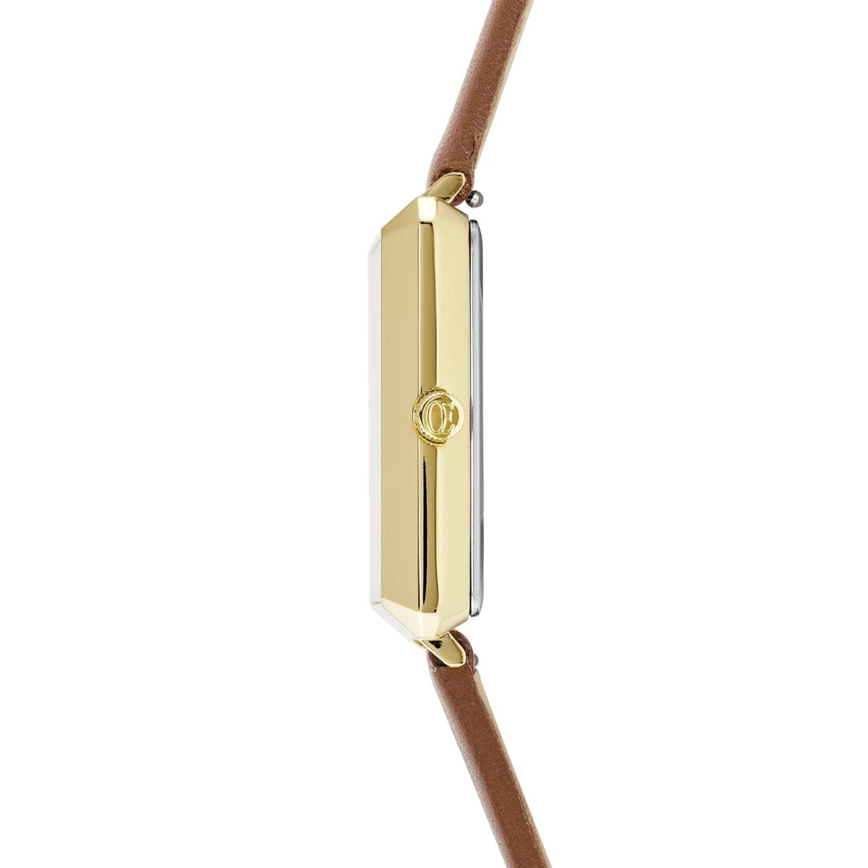 De Iconic Cube Watch heeft een klassieke combinatie van een geelgouden kast met een glinsterende wijzerplaat en een elegante bruine leren band. Dit maakt het dameshorloge het perfecte accessoire voor elke gelegenheid en voegt een vleugje extravagantie toe aan elke outfit.