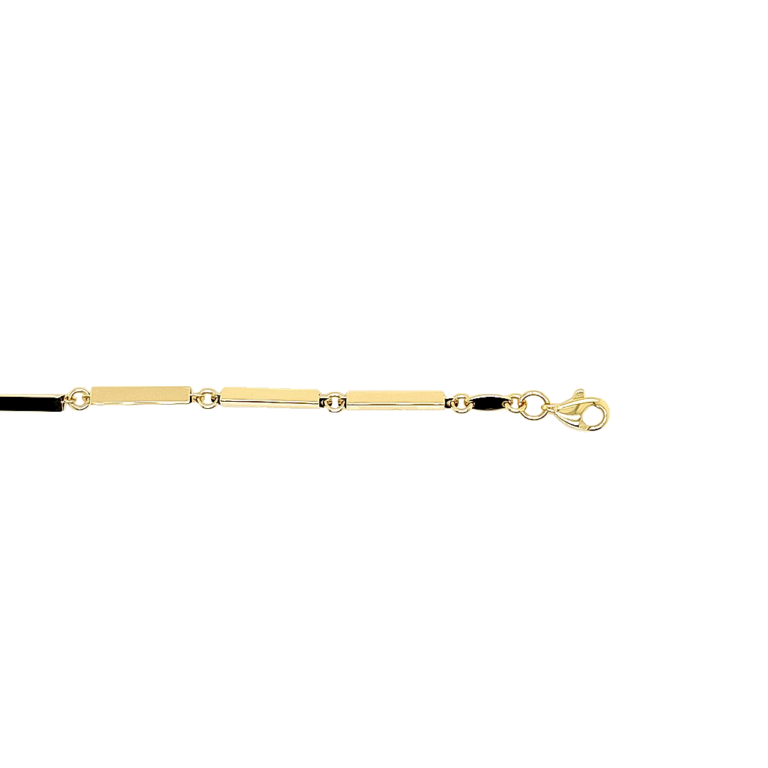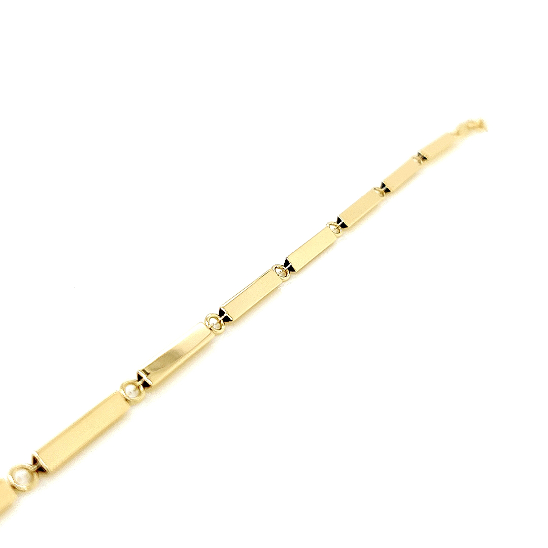 Dit geel gouden armband heeft een luxe en sierlijke uitstraling. Iedere schakel is glad gepolijst. De schakels hebben een driehoekige vorm, welke niet te opvallend is en goed geschikt is om met andere sieraden te combineren.