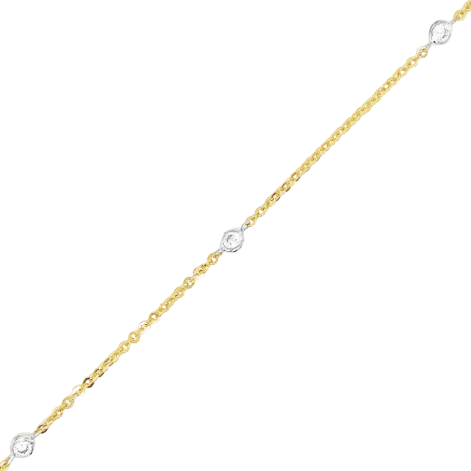 Dit 14-karaats geel gouden collier is onwijs leuk! De schakels worden onderbroken door vijf schitterende briljant geslepen zirkonia steentjes gezet in een witgouden ronde zetkast.