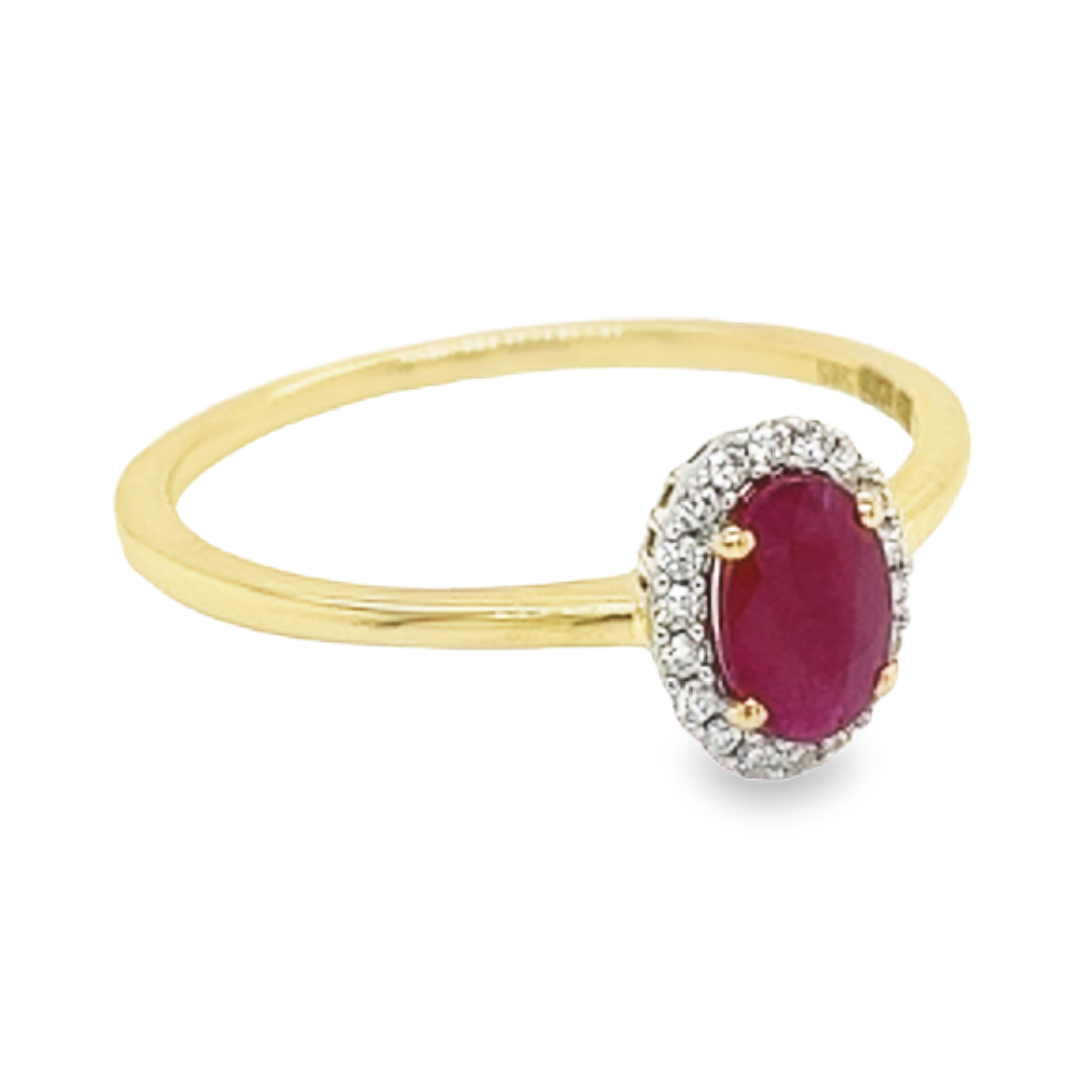 Geelgouden ring met 0,50 karaat Robijn en 0,07 karaat Diamant