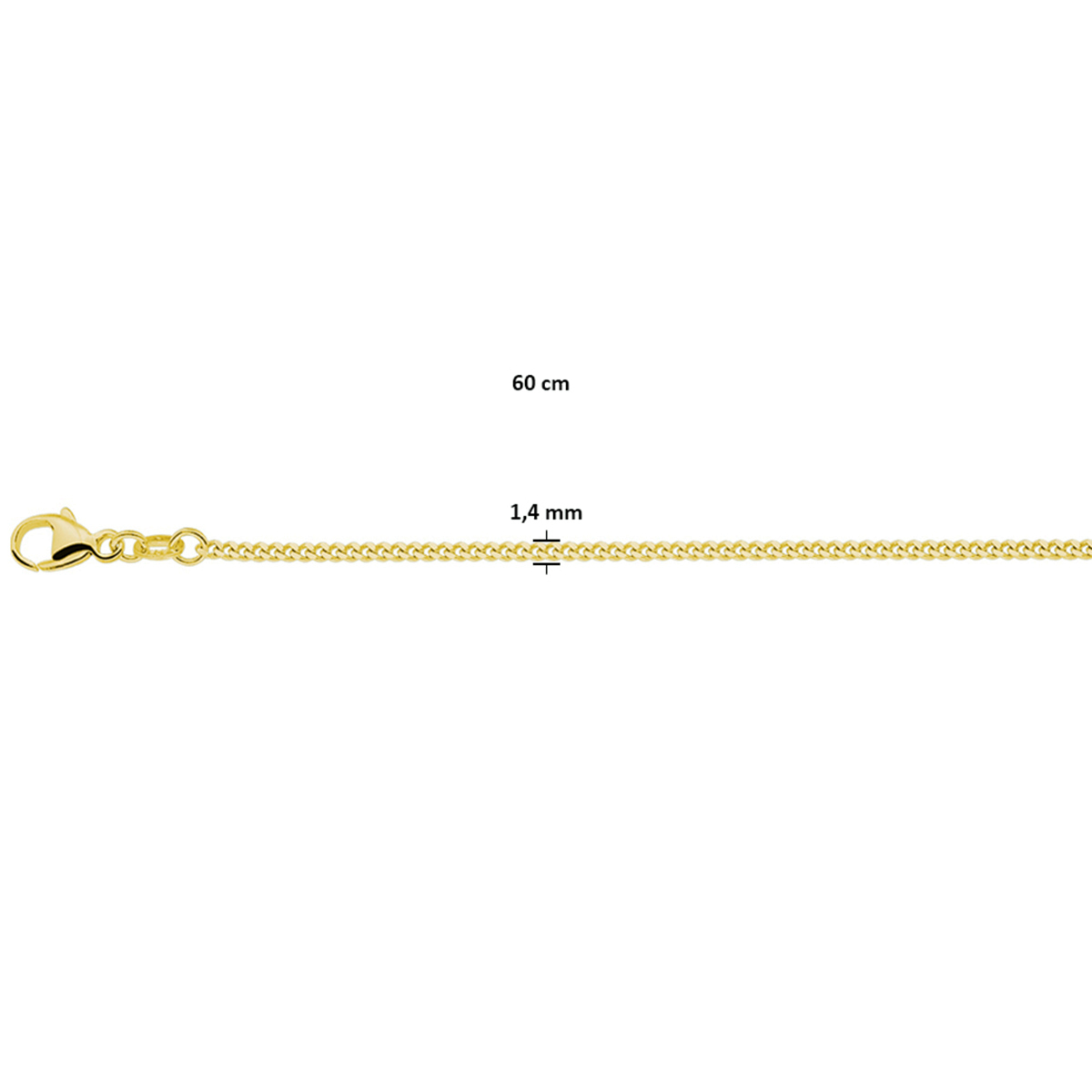 Verguld op 925 zilveren gourmette collier met een schakelbreedte van 1.4mm. Het collier heeft een stevige karabijn sluiting. Geen garantie op plating.