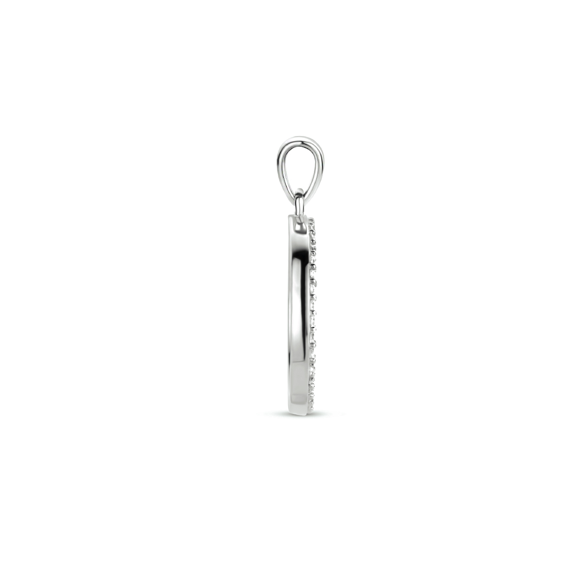 Gerhodineerd 925 zilveren, ronde hanger uitgevoerd met schitterende zirkonia. De hanger heeft een diameter van 18mm.