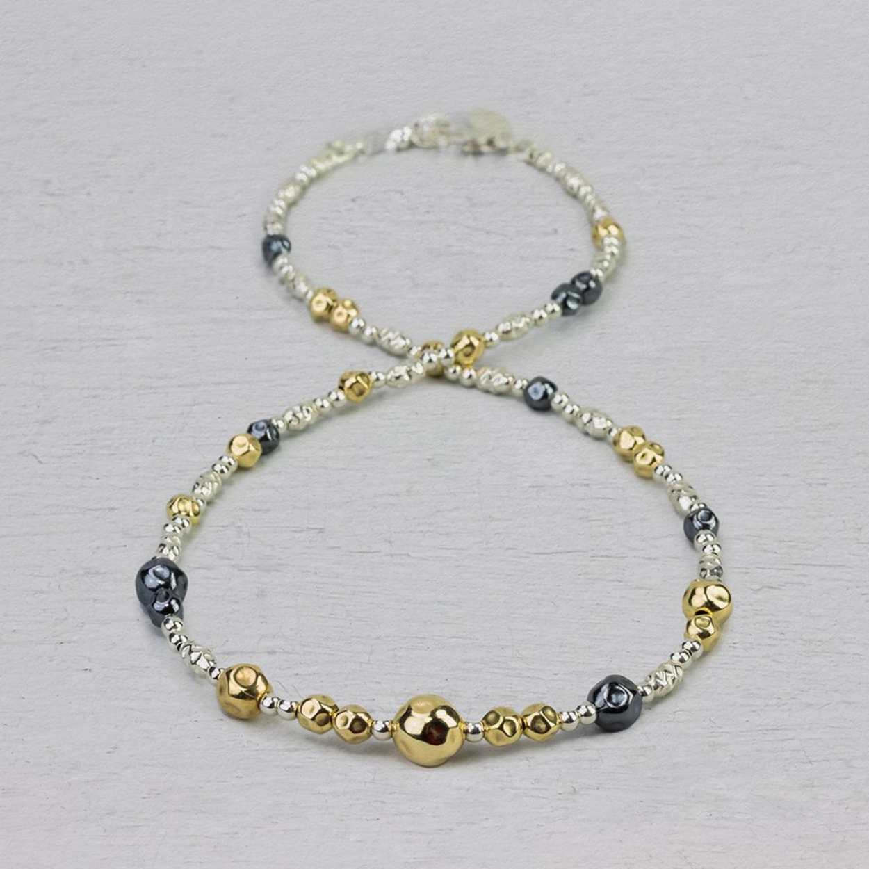 Collier van de najaarscollectie 2022 van Jéh Jewels met touch of gold bolletjes. Dit collier is gemaakt drie verschillende materialen. Namelijk geoxideerd zilver, goldfilled en zilver. Combineer dit collier met een bijpassende armband en maak je look af!