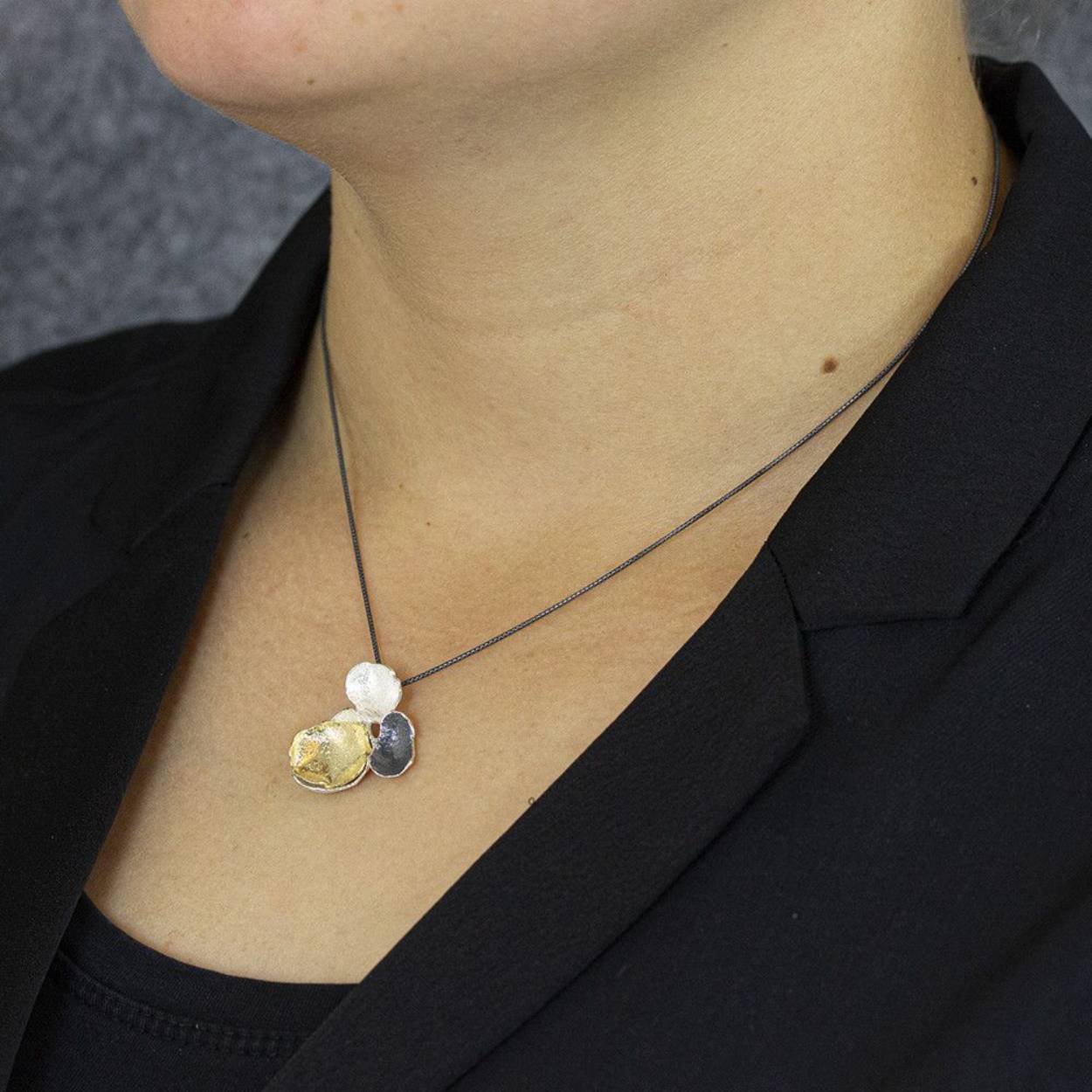 Collier gemaakt van 925 geoxideerd sterling zilver, met daaraan een hanger van 925 sterling zilver, geoxideerd zilver en G14K zilver verguld
