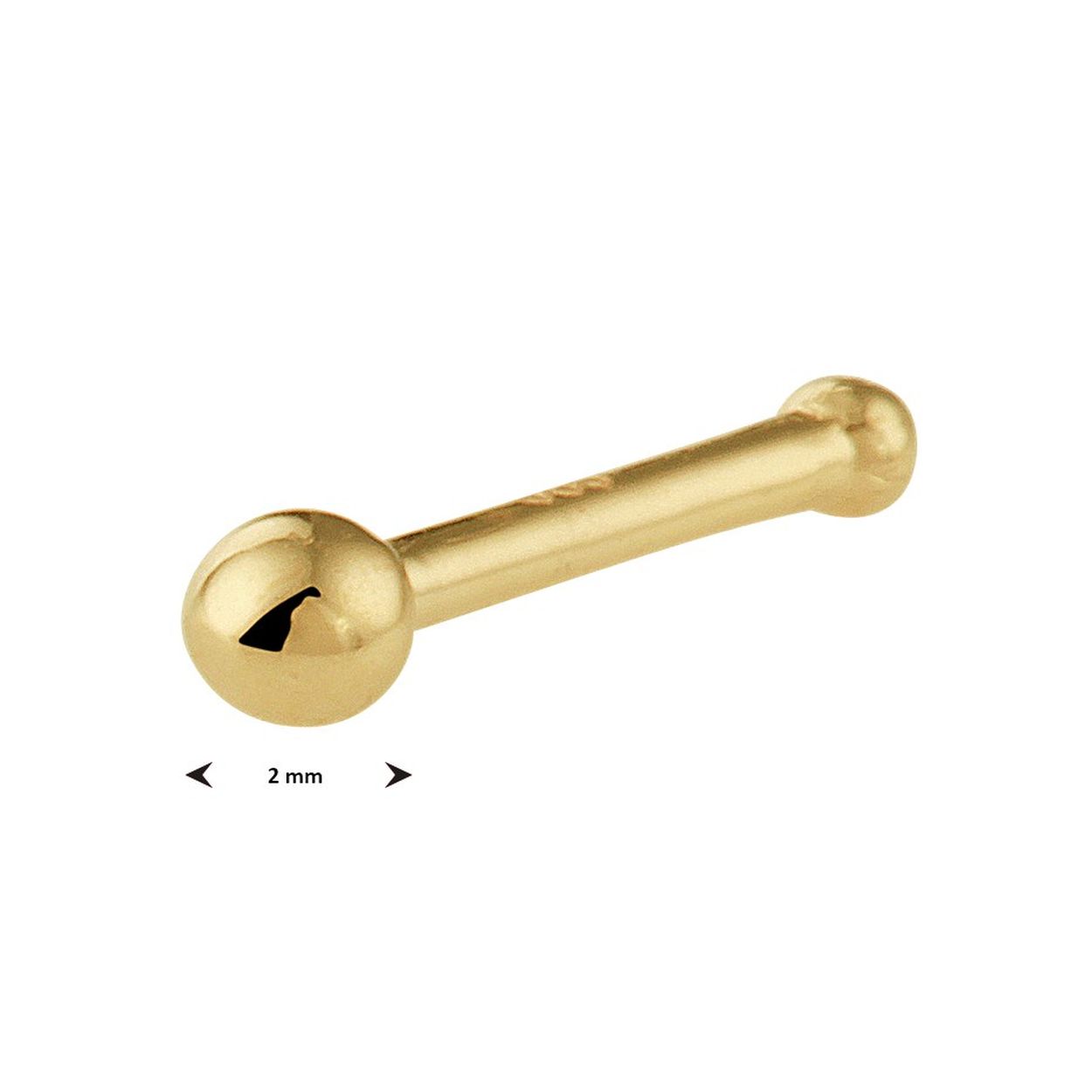 14k Geelgouden neusknopje uitgevoerd met een bolletje. Het neusknopje heeft een diameter van 2mm.