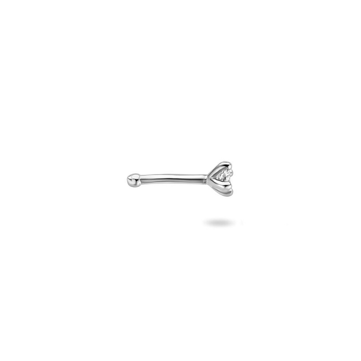 Gerhodineerd 925 zilveren neusknopje uitgevoerd met een schitterende zirkonia. Het neusknopje heeft een afmeting van 2.5x2.5mm.
