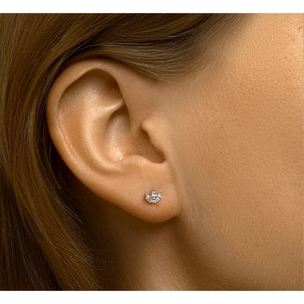 Gerhodineerd 925 zilveren oorknoppen uitgevoerd in de vorm van een lotus en met een schitterende zirkonia rij. De oorknoppen hebben een afmeting van 5x6mm.
