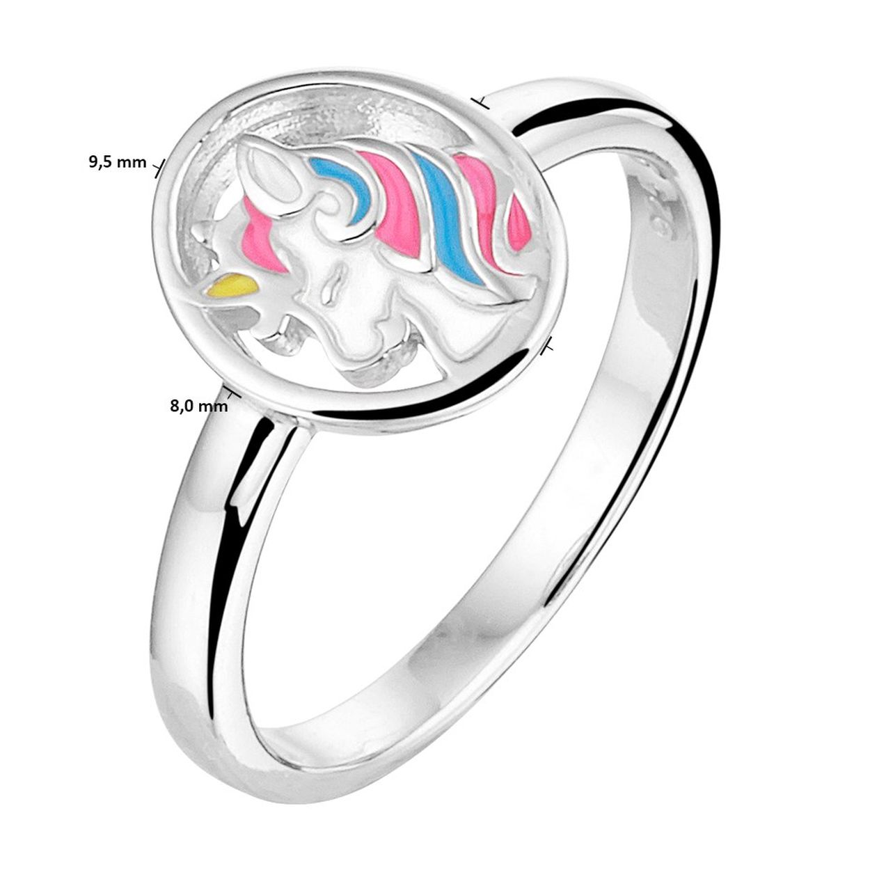 Gerhodineerd 925 zilveren ring uitgevoerd met een eenhoorn. De ring heeft een breedte van 8mm.