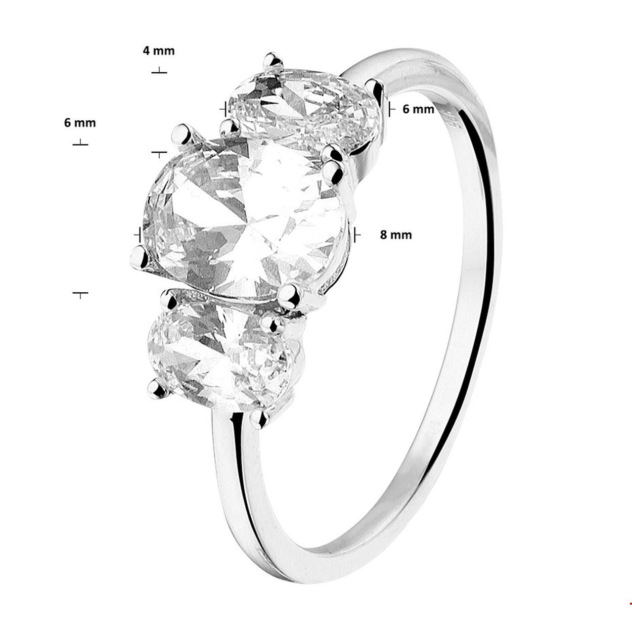 Gerhodineerd zilveren ring uitgevoerd met een schitterende rij van zirkonia. Glam up your outfit! Deze ring sprankelt je tegemoet en geeft je look direct een chique uitstraling.
