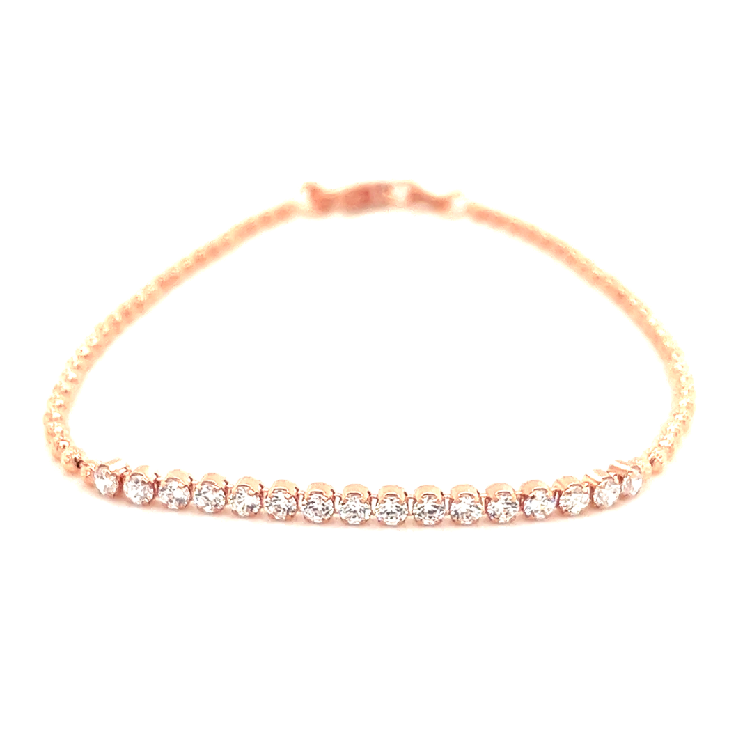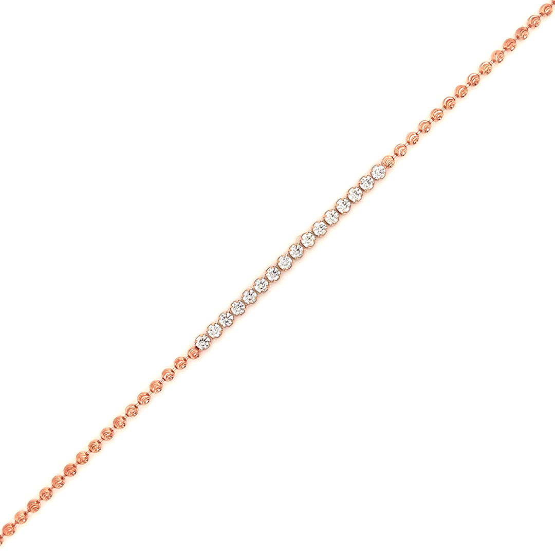 Deze rosé zilveren armband is bolletjes geschakeld met aan de bovenzijde een rij met briljant geslepen zirkonia stenen. Lengte van de armband is 19cm.