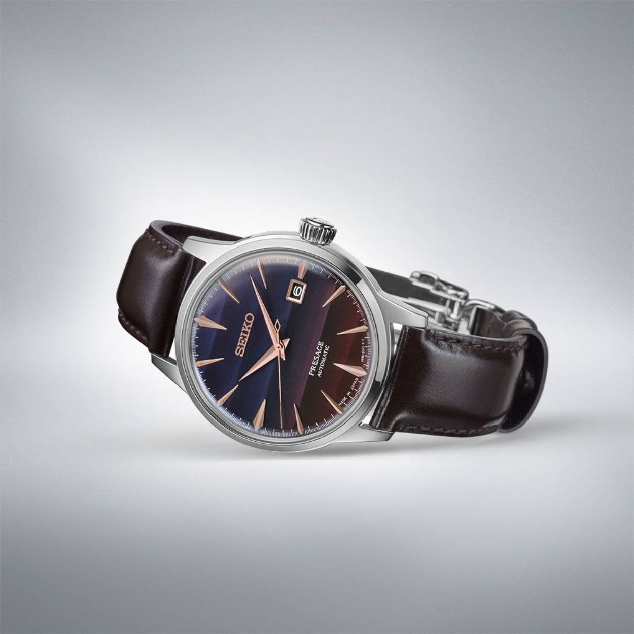 Dit Seiko Presage horloge is een van de ontwerpen uit de Star Bar serie. De kleuren van de wijzerplaat zijn opgebouw met een gradatie van veranderende tinten en een golvend patroon, dat doet denken aan de wolkenformaties in de lucht boven tokio.