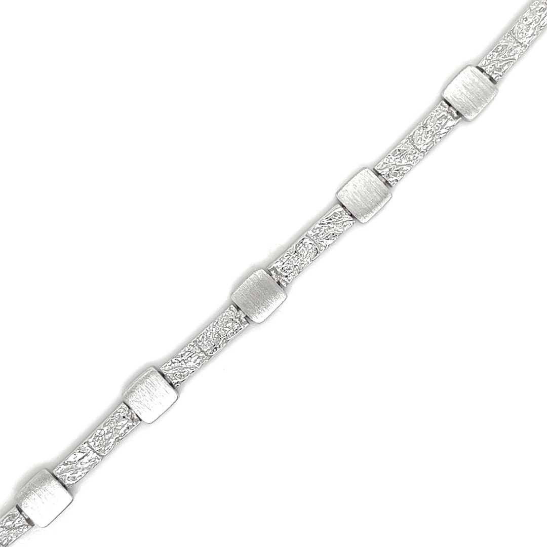 Deze armband is gemaakt van 925 zilver. De armband is op bijzondere wijze bewerkt en heeft een ruwe uitstraling. Ook heeft de armband een stevig karabijnslot.