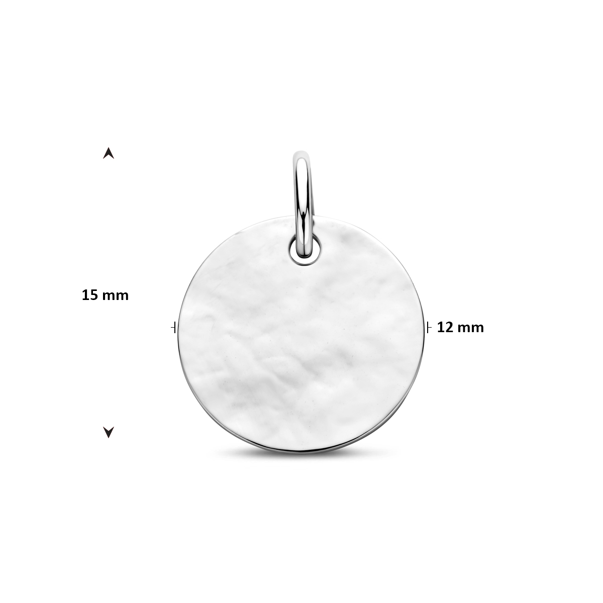 Gerhodineerd 925 zilveren graveerhanger met een diameter van 12 mm.