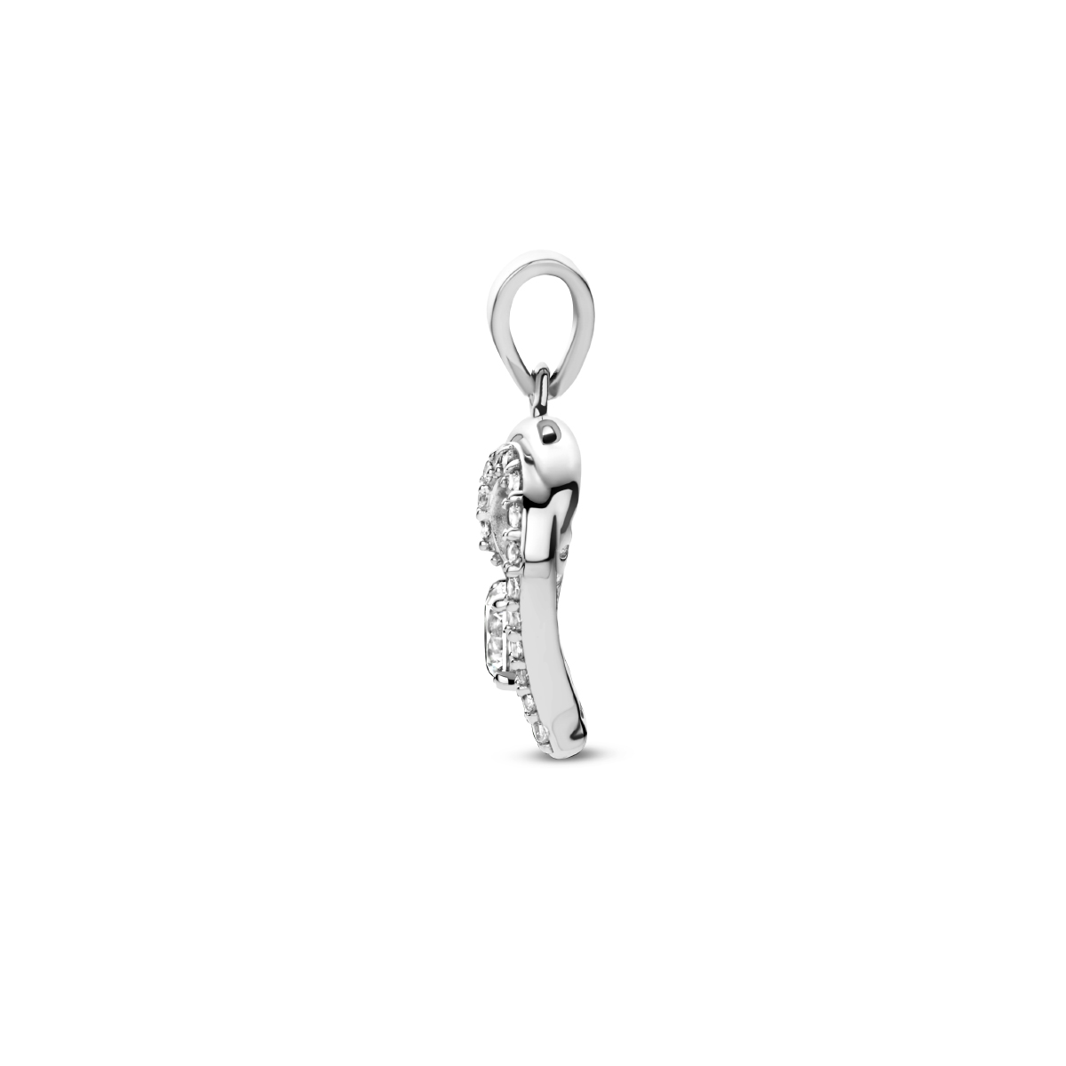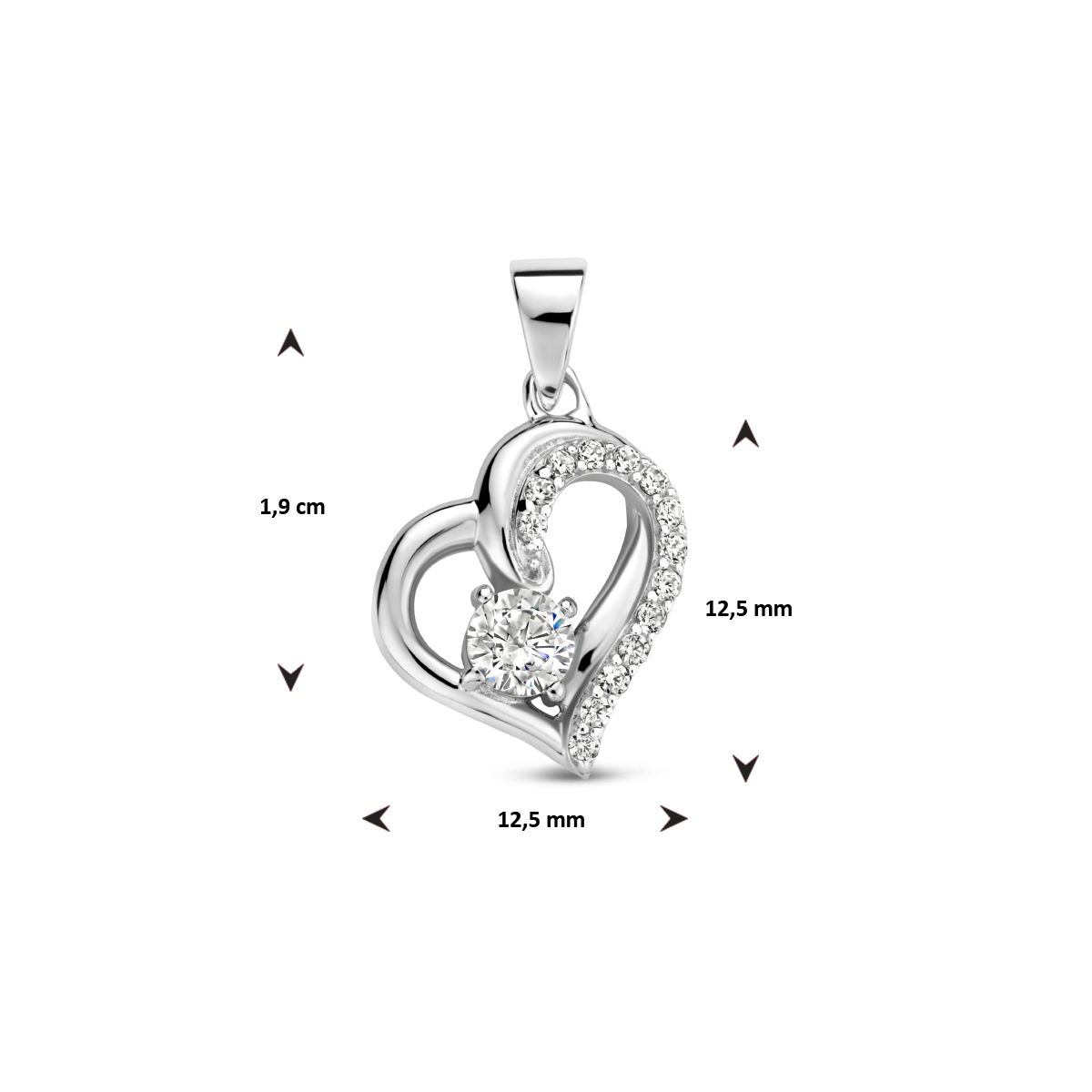 Gerhodineerd 925 zilveren hanger in de vorm van een hartje met zirkonia. De hanger heeft een totale hoogte van 1.9cm.