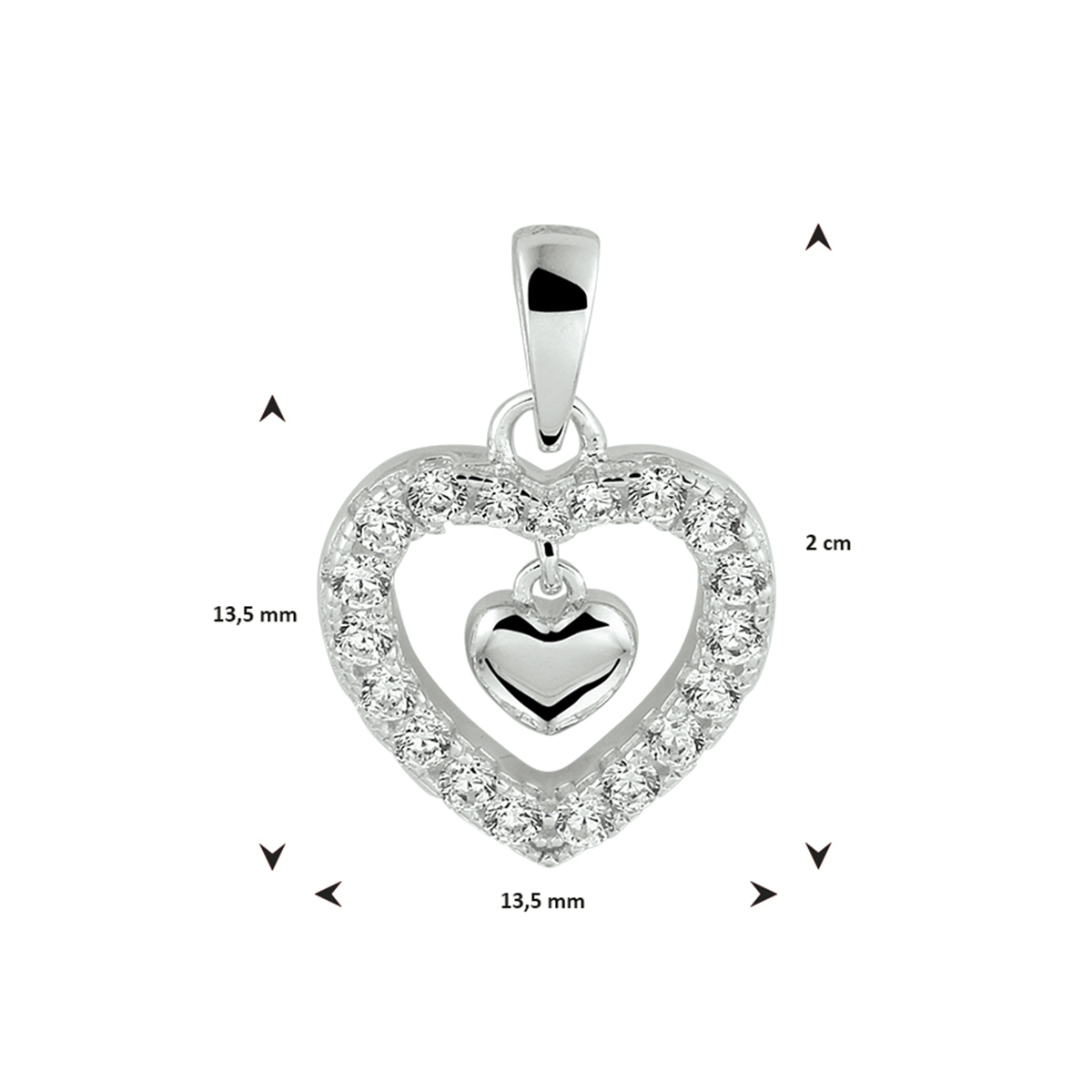Gerhodineerd 925 zilveren hanger in de vorm van een hart en uitgevoerd met een schitterende zirkonia rij. De hanger heeft een totale hoogte van 2cm en een breedte van 13.5mm.
