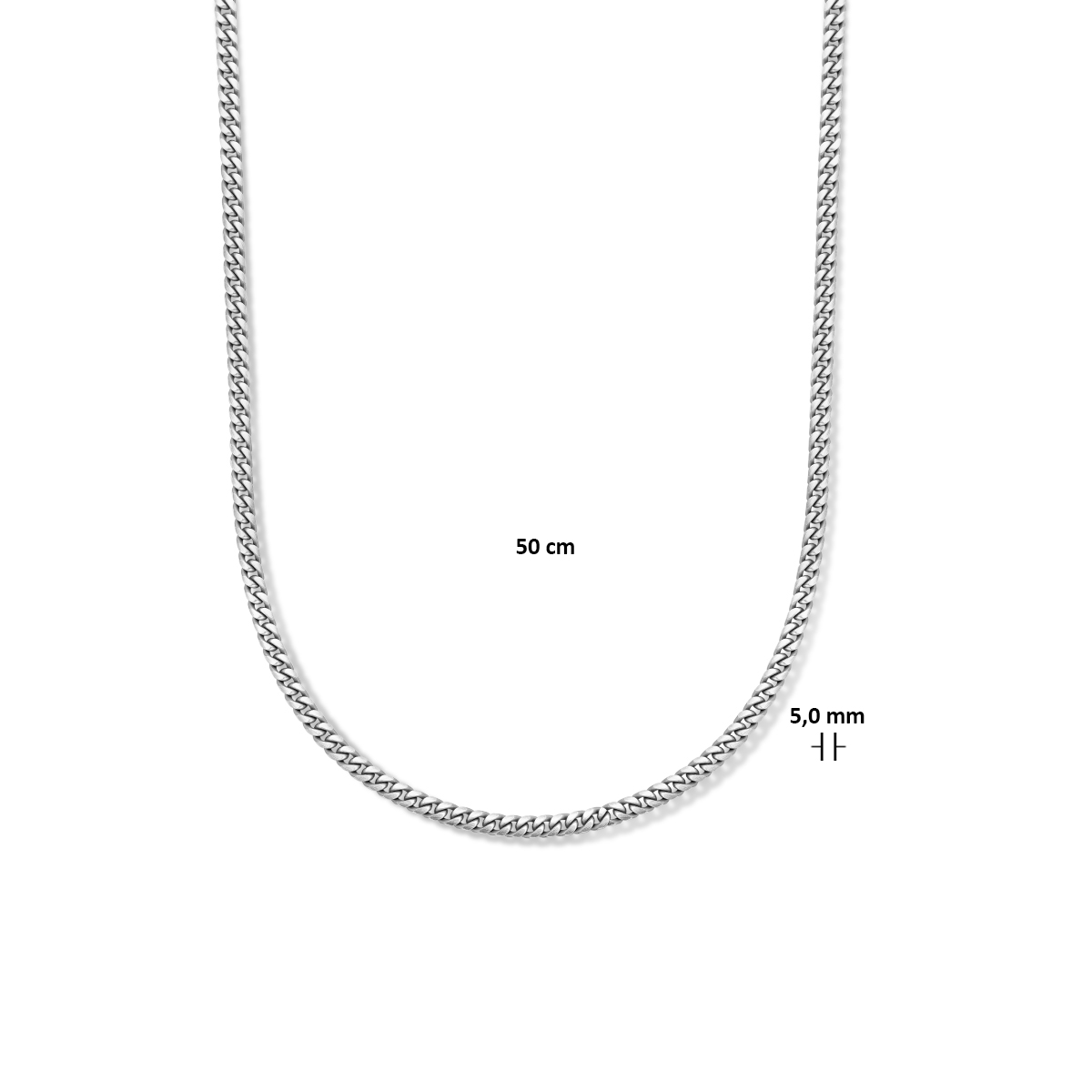 Geoxideerd 925 zilveren lengte artikel met een schakelbreedte van 5mm. Uitgevoerd met een karabijn sluiting.