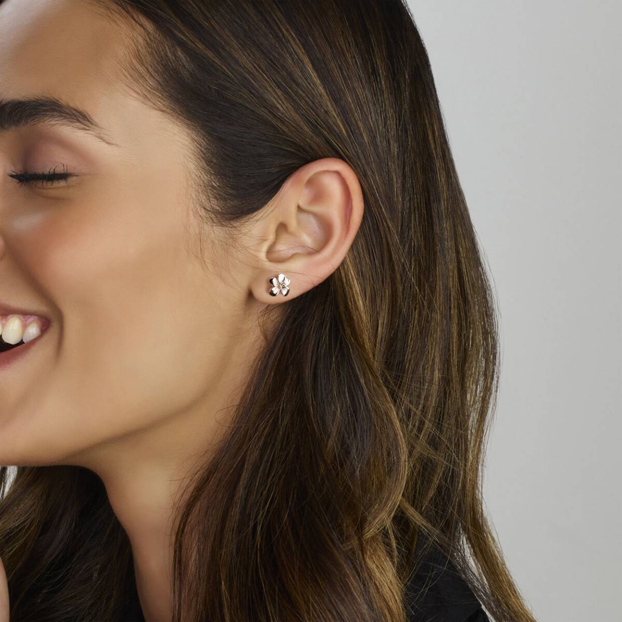 Gerhodineerd 925 zilveren oorknoppen in de vorm van een viooltje.