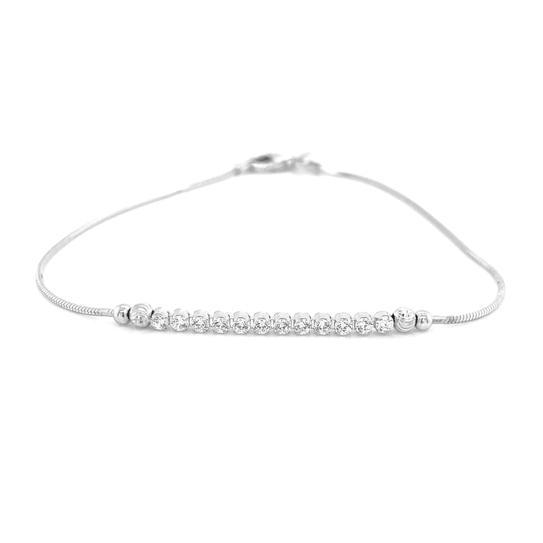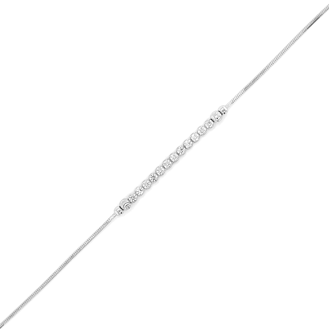 Deze 925 zilveren armband is ontzettend leuk. De armband is slang geschakeld met aan de bovenzijde een rij met briljant geslepen zirkonia stenen. Dit sieraad is voorzien van een rhodium laag, dit zorgt ervoor dat de kleur langer mooi blijft. Lengte van de armband is 19cm.