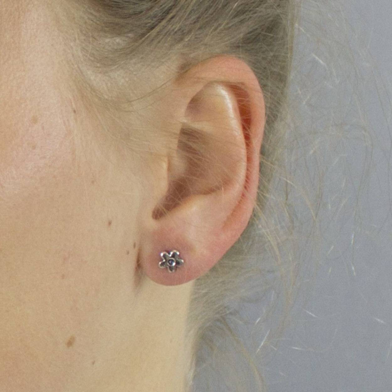 Oorstekers gemaakt van 925 sterling en geoxideerd zilver. Deze fijne oorstekers in de vorm van een bloem zijn tijdloos en geschikt voor jong en oud.