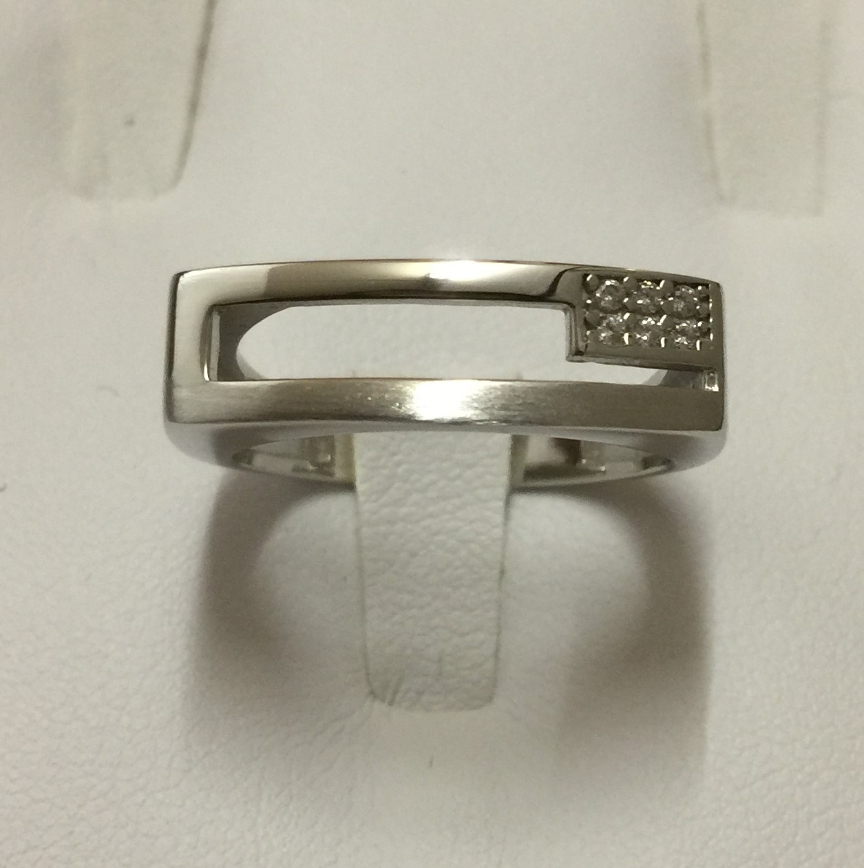 Deze 925 zilveren ring heeft een bijzondere vorm en een schitterende uitstraling. De briljant geslepen zirkonia stenen zorgen deze mooie schittering. De ring is gedeeltelijk gematteerd en gedeeltelijk glad gepolijst.